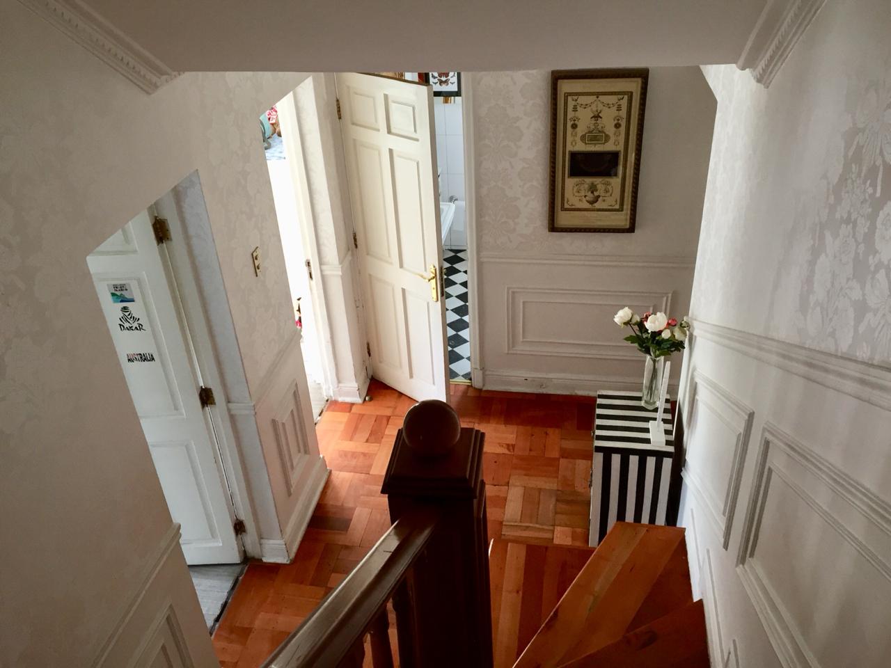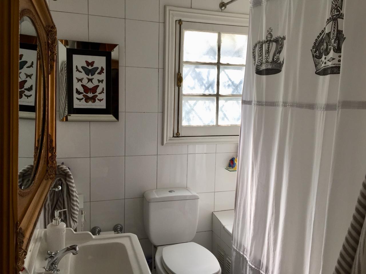 En el segundo piso hay una iluminada sala de estar con un baño y una pieza.