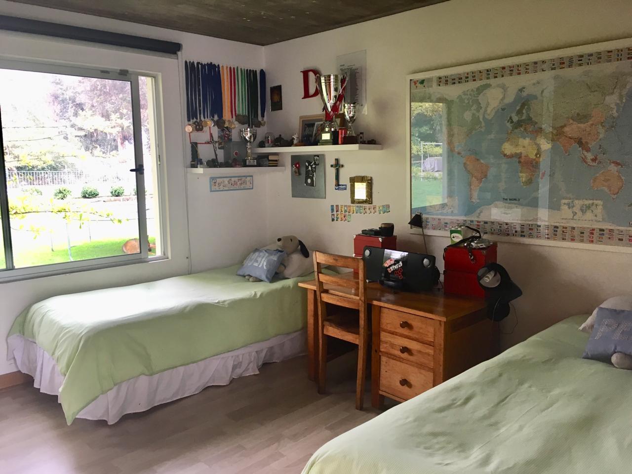 Calefacción por losa, estanque de 1.000 litros, estufa a leña en el dormitorio principal, ventanas termopanel, alarma, estacionamiento techado para 2 autos. Seguridad las 24 horas.