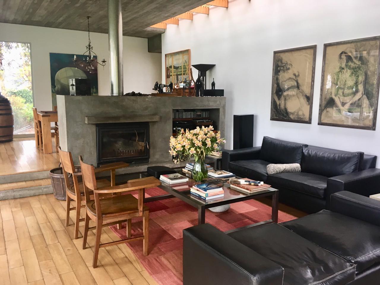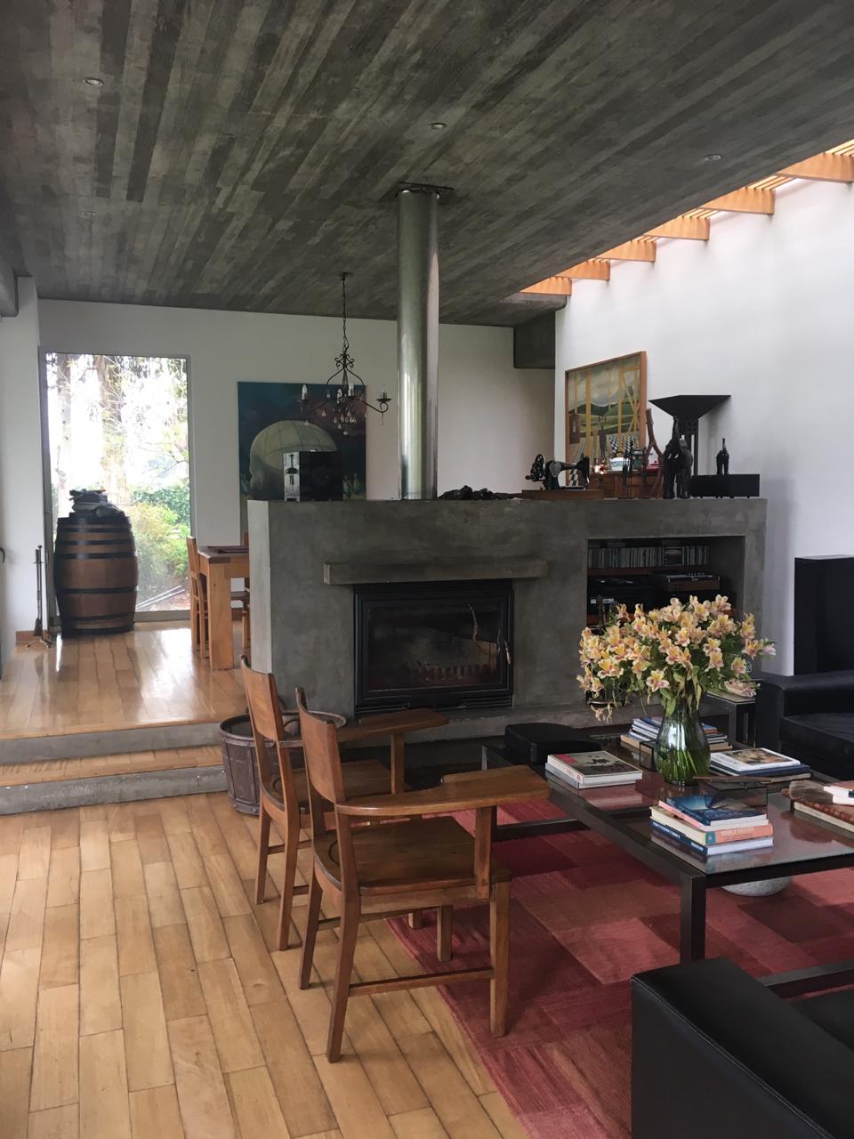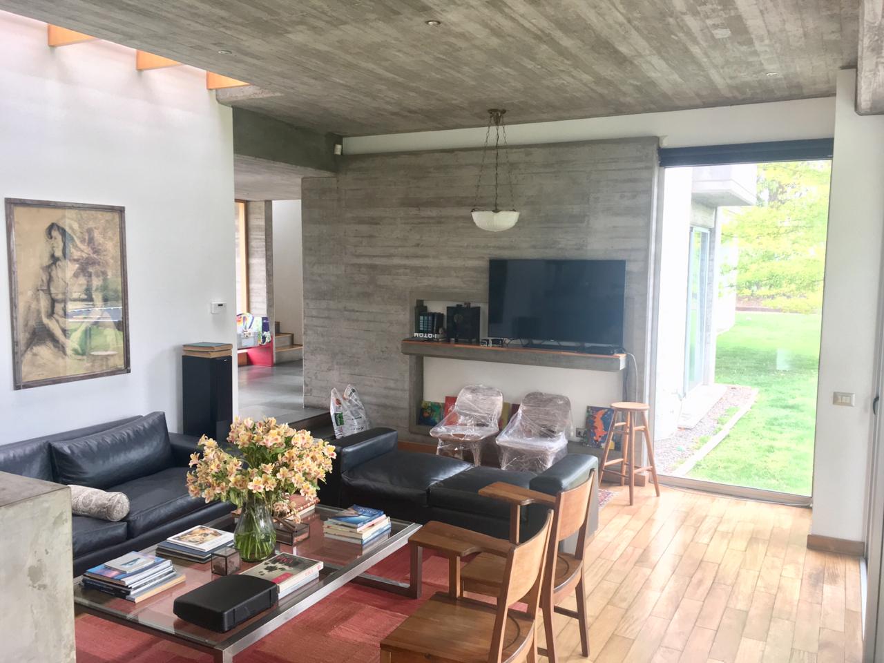 Casa de increíble arquitectura, de materiales nobles, techos y muros de hormigón a la vista, amplios ventanales y línea de tragaluz en el living comedor que le mayor luminosidad al espacio.