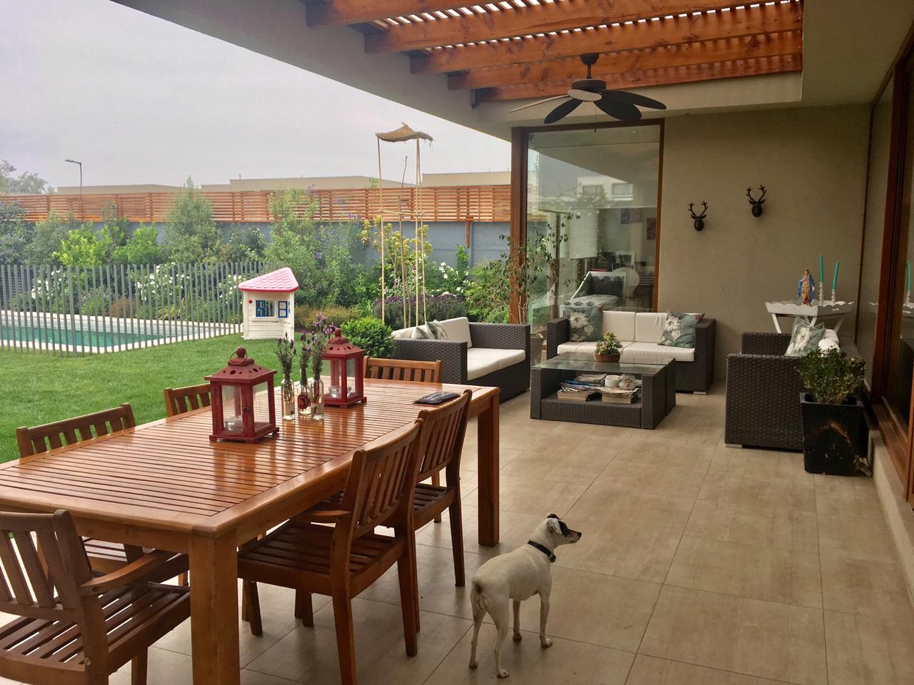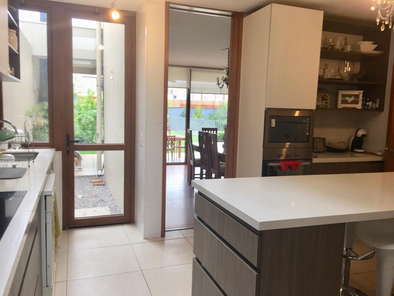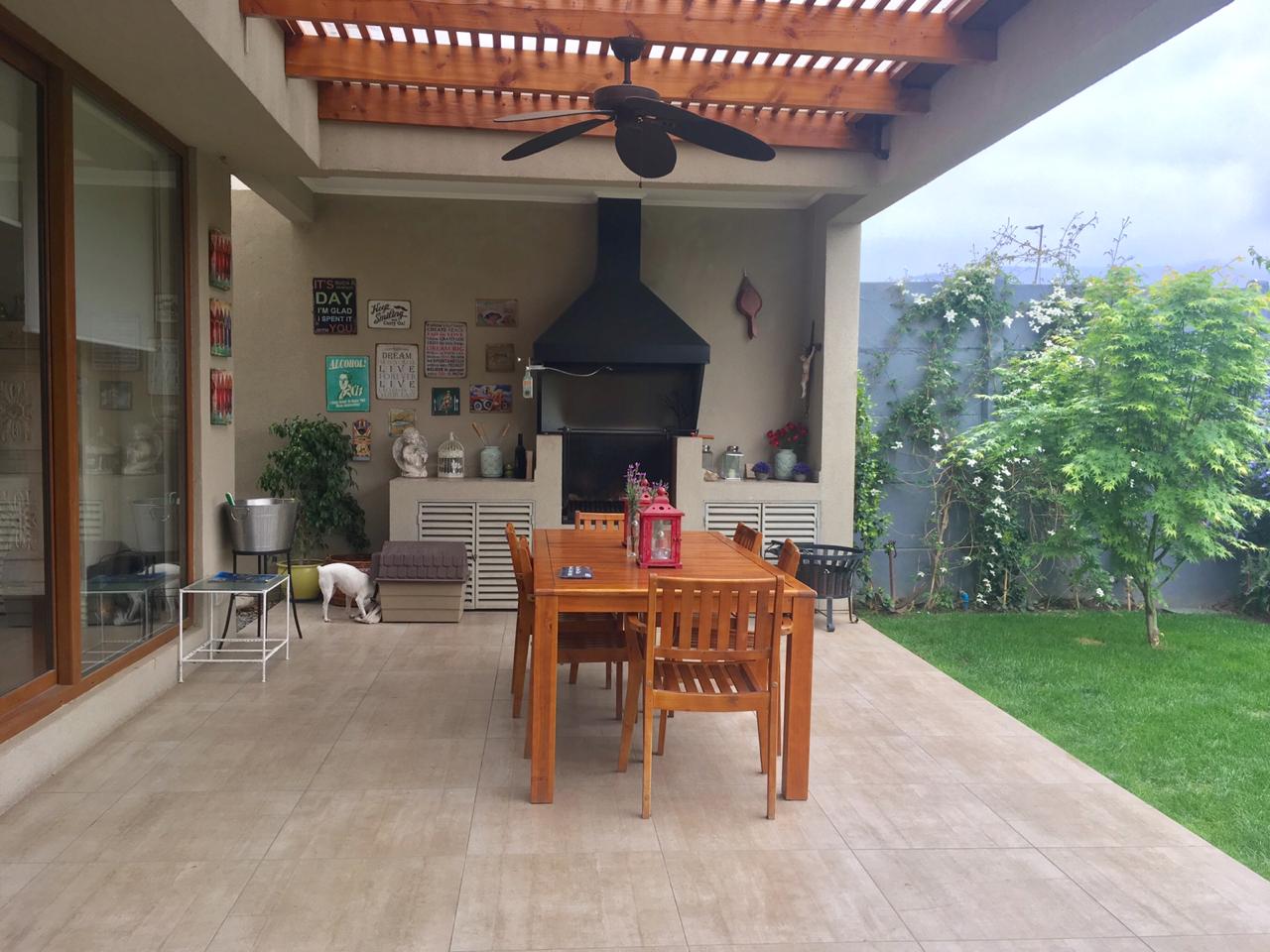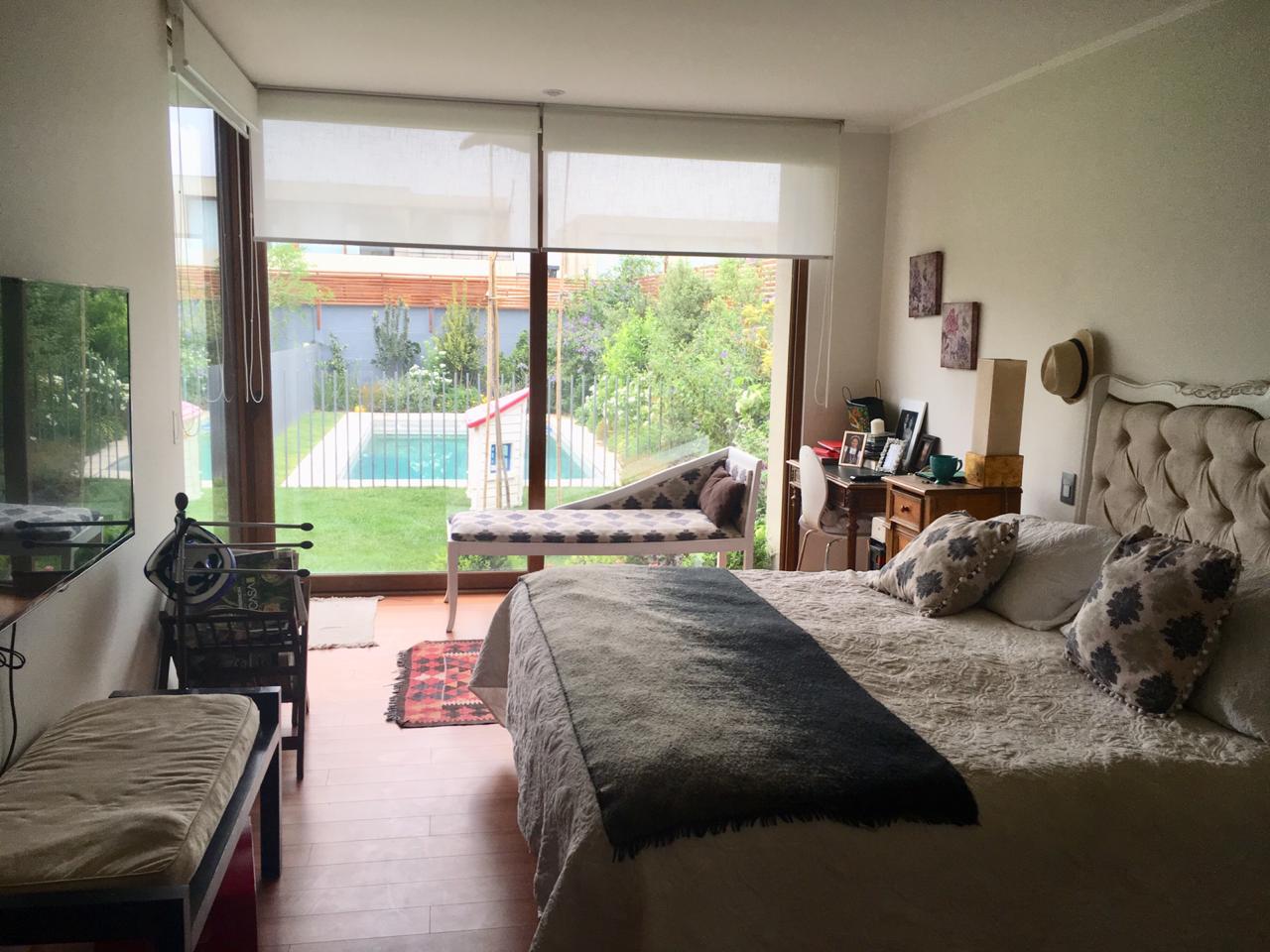 La casa está orientada al Oriente y sur, tiene un precioso jardín ya formado con riego automático y piscina, terraza grande techada con quincho iluminación y ventiladores de techo, donde convergen el living y comedor, de muy buen porte separados por un medio muro. El hall de entrada tiene doble altura con mucha luz y baño de visita. La cocina es cuadrada, equipada con una isla. El dormitorio ppal está en el primer piso, en suite con walk-in closet, el segundo walk-in closet lo transformaron en un pequeño escritorio. El baño principal tiene jacuzzi y ducha separados.