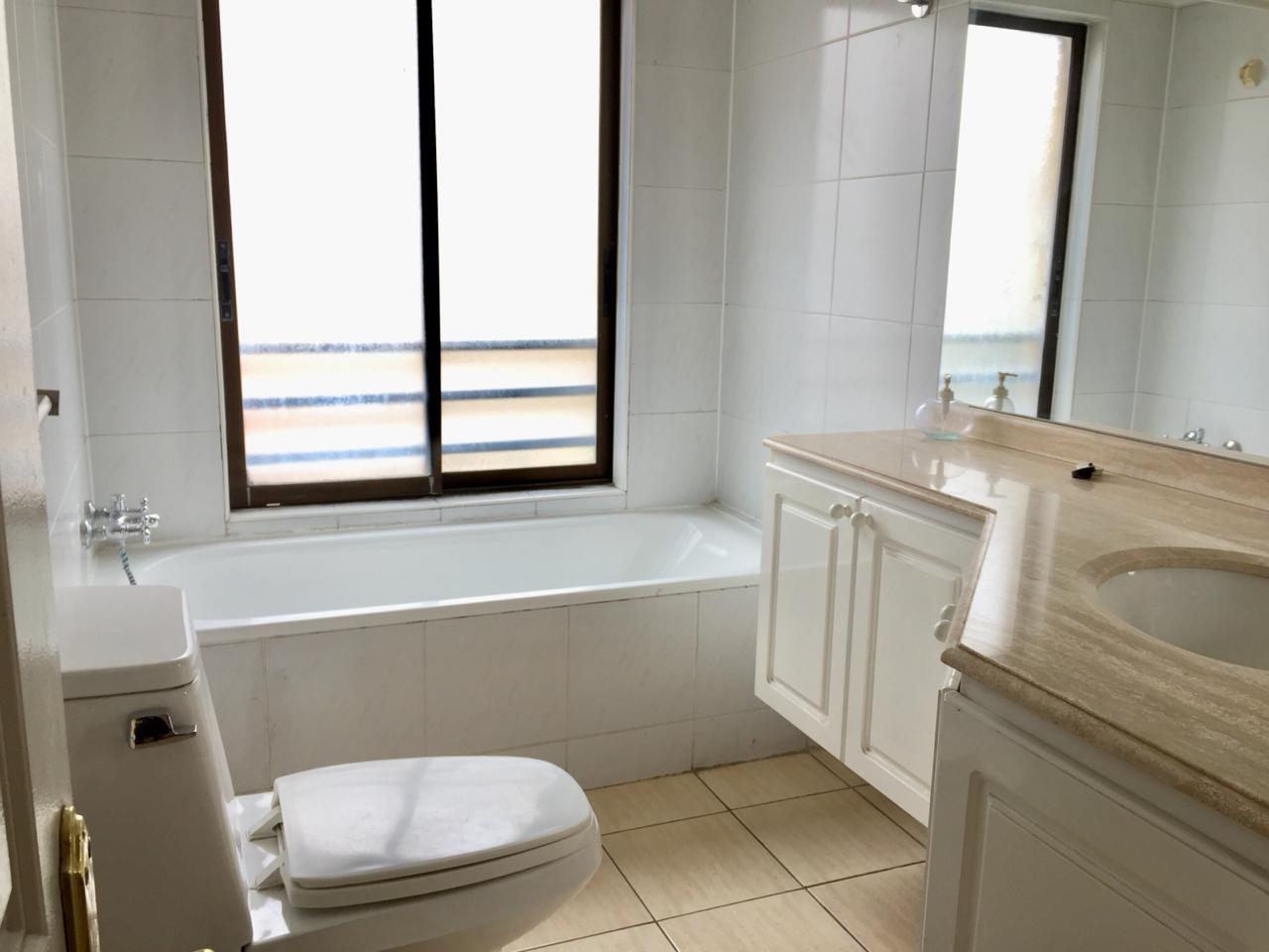 Living comedor separado, baño de visita, cocina equipada con amplias despensas, más pieza y baño de servicio. Cuatro dormitorios y 3 baños, donde dos son en suite y el dormitorio principal cuenta con walking closet y salida a una terraza.